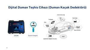 DİJİTAL DUMAN KAÇAK TEST CİHAZI (DSDM) , araç sistemlerinde hassas ve etkili kaçak tespiti için özel olarak tasarlanmıştır. Arabalarda, motosikletlerde, ATV’lerde, hafif kamyonlarda ve teknelerde kullanım için idealdir. DSDM, dijital bir ekranda görüntülenen doğru ölçümler sağlar ve bu da onu profesyonel incelemeler için özellikle uygun hale getirir. Ayrıca, sistem sezgisel, kullanıcı dostu yazılım arayüzüyle öne çıkar ve kullanım kolaylığı sağlar.