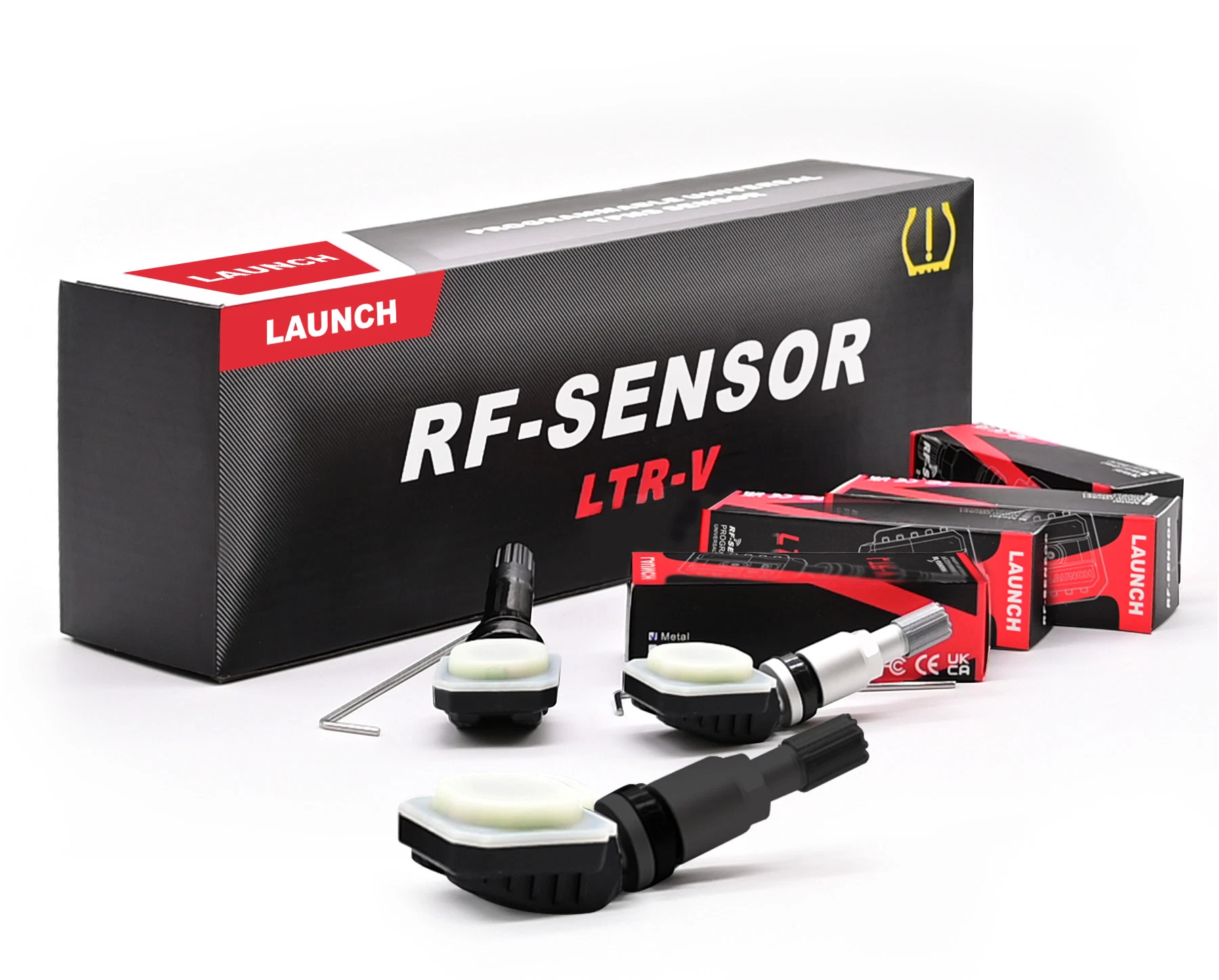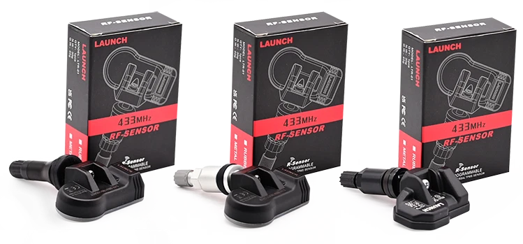 LAUNCH TPMS sensörleri plastik veya metal valf ile mevcuttur.