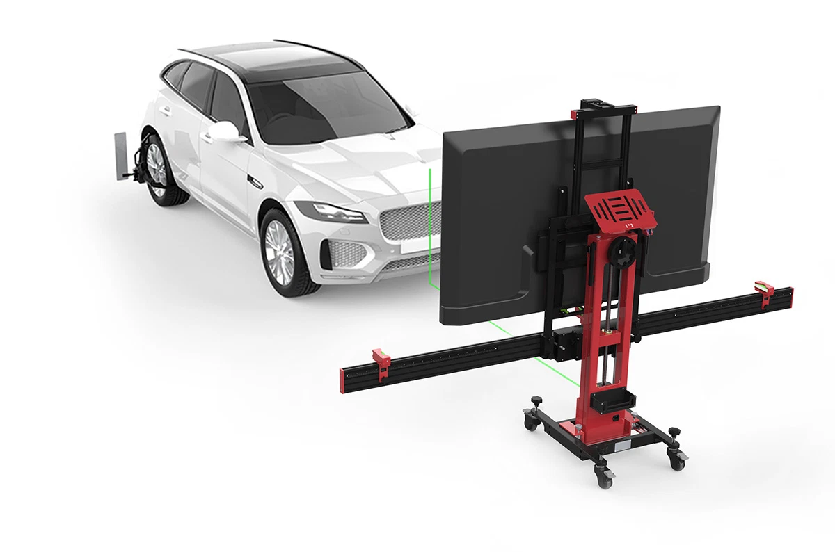 Çapraz lazer kullanılarak, tahta tam olarak merkeze hizalanır - ön radar ve ön kamera sistemlerinin doğru kalibrasyonu için gereklidir.