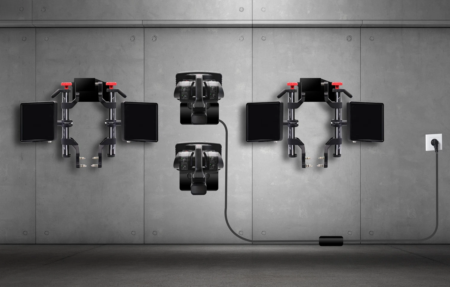 Ölçüm üniteleri ve tekerlek kelepçeleri, aynı anda şarj olurken yerden tasarruf etmek için duvara monte edilebilir.